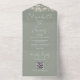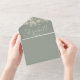 Diese ganzheitliche Saite strahlt eine schöne grüne Hochzeitseinladung mit eleganter Typografie aus. Die Einladung enthält eine perforierte RSVP-Karte mit Ihrem Hochzeitswebsite QR Code. Entwickelt von Thisisnotme©