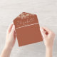 Diese Einladung zur Terracotta-Hochzeit, die in einer Streichellichter gestaltet wurde, zeichnet sich durch elegante Typografie aus. Die Einladung enthält eine perforierte RSVP-Karte mit Ihrem Hochzeitswebsite QR Code. Entwickelt von Thisisnotme©