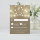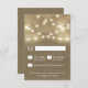 String Lights + Rustic Burlap Wedding RSVP Cards - mit einem burlap-gedruckten Hintergrund und einem String-Lichtdesign oben.