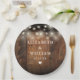 Diese Saitenleuchten rustikalen Holz boho Scheune Hochzeitspapier Teller können mit Ihren Informationen in schicken Typografie personalisiert werden. Entwickelt von Thisisnotme©