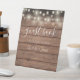 String Lights Rustic Wood Script Gästebuch Sockelschild