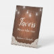 Lieblinge, bitte nehmen Sie eine... Unterschreiben Sie, um Hochzeitsgäste anzuweisen, eine Gastgeschenk Hochzeit oder ein Geschenk zu nehmen. Vintage String Lights Mason Jar Lace Wood Wedding Design. Vintages String Lights Mason Jar Lace Wood Theme hat den Charme und den Charakter einer Sommernacht im Freien. Weiche Beleuchtung und Vignettenrahmen mit Ecru-Creme-Spitze tadellos und glänzende Gläser an einer Saite hängen. Perfekte Ergänzung zu einer eleganten rustikalen Saitenlichter thematische Hochzeit. String Lights Rustic Wood Script Guest Book Pedestal Signage