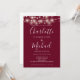 Mit hübschen Saitenlichtern und prägnanten Stilbezeichnungen kann diese elegante burgundische Hochzeitseinladung mit all Ihren besonderen Hochzeitstag-Informationen auf der Vorderseite, Ihren Hochzeitswebseiten-Details und Ihrem QR-Code auf der Rückseite personalisiert werden. Entwickelt von Thisisnotme©