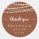 Diese Saitenbeleuchtung terracotta Dank Gastgeschenk Hochzeit klassischen Rundaufkleber ist perfekt für eine klassische Hochzeit. Das Design besticht durch schöne handbemalte Saitenleuchten in Terrakotta-Hintergrund. Machen Sie den Aufkleber mit Ihren eigenen Namen, der Veranstaltung (falls zutreffend) und dem Datum versehen. Diese Aufkleber können einen Hochzeitsempfang, Brautparty oder jede Veranstaltung ergänzen!