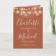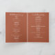 Terracotta-Signatur-Skript Hochzeitsprogramm mit hübschen Saitenleuchten und schicke moderne Typografie. Dieses stilvolle Hochzeitsprogramm kann mit Ihren speziellen Informationen zum Hochzeitstag personalisiert werden. Entwickelt von Thisisnotme©