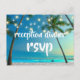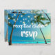 Empfang UAWG postcard mit romantischen Palmen und Lichtern aus der tropischen Hochzeit in Urlaubsort. Bietet Platz, um Speisen oder Präferenzen einzuschließen. Einfach mit Ihren eigenen Namen und Informationen anpassen. Foto und Design von T.K. Goforth, alle Rechte vorbehalten. Vergewissern Sie sich, dass Sie in meiner Hochzeitskollektion mit Tropical Beach und String Lights in meinem Zazzle-Laden die passenden Artikel Karo erhalten: