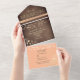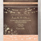 String Lights Wood Rustic Peach Wedding All In One Einladung