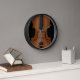 Die Uhr hat ein Detail aus einem Cello (oder Violine oder Viola), das die Saiten, die Brücke, die Löcher und die Feintuner zeigt.