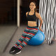Capri Leggings für Frauen mit roten und blauen Retro-Streifen in einem modernen und Retro-Stil.