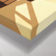 An illustration from a photograph of two blue and white striped deckchairs on a beach themed background printed on a canvas.