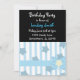 Un arrière - plan noir accentué par une bordure de rayures bleues et d'étoiles au design floral blanc. Customisez avec toutes les informations de votre anniversaire selon vos besoins.