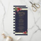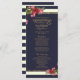 Roses élégantes, chic et roses rouges et roses avec rayures bleu marine et blanc ivoire et or imitation imprimé, cartes de programme de mariage. Ce design classique et sophistiqué est parfait pour le couple marié branché et élégant. Personnalisez avec votre propre message sur l'avant ainsi qu'avec un premier monogramme customisé sur l'arrière. Toute la conception d'impression photo.