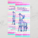 Original, personnalisé, rose, rayures bleues, invitation de la Saint-Valentin avec girafes de baiser dessin d'art Matte 10,2 cm x 23,5 cm, enveloppes blanches standard incluses