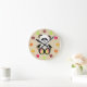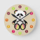 Eine Uhr, die eine Abbildung eines Panda-Bären mit gestreiften Pfoten und Ohren zeigt.