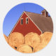 Das ist ein Foto von Strohbalen neben einer Scheune.