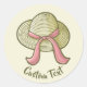 Der Strohhut der Frau im Sommer mit langem rosa Band.