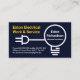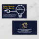 Ein dunkelblaues Cover zeichnet sich durch ein kreatives Plug und eine Glühbirne aus. In der Glühbirne befindet sich der Name und der Titel des Jobs. Oben auf der Karte befindet sich der gelbe Firmenname mit den Kontaktdaten in der Nähe der Basis. Oben auf der Rückseite befindet sich ein goldenes Buchstaben-e-Zuhause-Verkabelungslogo, das Sie verwenden können, gefolgt von dem Firmennamen und den Kontaktdaten. Eine großartige Kreativkarte für Elektriker. #electrician #electricalservice #electricalservice #electricaltragner #electricalreparator #electricalengineering #electricpower #electricalwire #plug #electriclink #electriclink #electriclink #electriclink #electrimeter #electrimeter #electricaler reparator #electricaliplant #electrica