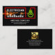 Eine rote Leiterplatte auf und zapft einen elektrischen Strom, um die grüne Glühbirne zu beleuchten. Der elektrische Impuls feuert oben Ihren Berufstitel "Elektriker" auf (den Sie die Beschriftungen so ändern können, dass sie Ihren Bedürfnissen entsprechen). In der Nähe der Kartenbasis finden Sie Ihren prestigeträchtigen Namen und Kontaktdaten.