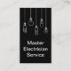 Coole moderne Zwei-Seiten-Elektrische Visitenkarten in einer Online-Vorlage in klassisch Schwarz-Weiß mit elektrischen Glühbirnen an der Vorderseite und Ihr Beruf angezeigt zusammen mit Ihren Kontaktdaten auf der umgedreht Seite mit zwei Seitenaufdruck inklusive.