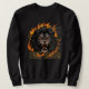 Digitale Darstellung mit einem erbitterten Löwenkopf mit einem detaillierten und realistischen Stil. Um den Löwenkopf herum ist ein lebhafter Flammenring. Der Text "THE KING" ist fett geschrieben