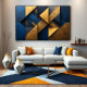 Sofistizierte geometrische Kunst, die tiefes Blau und texturiertes Gold in diagonalen Schichten vereint. Verkörpert Luxus, Ordnung und Modernität – perfekt für Unternehmens- oder hochwertige Wohnräume. Jeder Winkel offenbart kunsthandwerkliche Präzision; jede Farbe symbolische Macht. Verwandeln Sie Wände in Aussagen zeitloser Eleganz mit diesem lebendigen, strukturellen Meisterwerk.