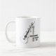 This minimalist black-and-white mug features an elegant line art of an acoustic guitar, surrounded by subtle floating notes and the bold quote: