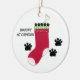 Ein niedlicher Strumpf mit einem Knochen drin, Pfoten druckt um ihn herum. Passen Sie den Haustiernamen an, wie gewünscht.