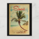 Ein einzigartig Retro Mitte des Jahrhunderts moderne Stuart Florida Kunstdruck in Vintage Reise Poster Stil. Es verfügt über eine geschwungene Palme am Sandstrand mit Ozean unter einem blauen bewölkten Himmel.
