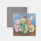 L'ours vert fourré avec un ruban plaid fait la lecture en cercle avec un groupe d'animaux fourrés. Ours rose, lapins oranges, chiot jaune et girafes violettes sont installés sur le sol en bois, recouvert d'une bande bleue. Cette impression est également utilisée sur de nombreux autres produits pour enfants. L'impression du dessin est de l'art crayon couleur, à l'origine pour le défi d'art magazine crayon couleur en utilisant la référence photo Sally Robinson. L'artiste est moi Jenny Luan