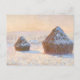 Eine schöne Kunstpostkarte mit dem Gemälde von Claude Monet (1940-1926), Wheatstacks - Schneeeffekt, Morgen (1891). Eine schneebedeckte Landschaft mit Weizenstapeln bei Sonnenaufgang.