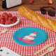 Coole rosa und weiß gestreifte gürtelförmige Party Teller.