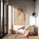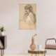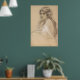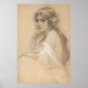 Dieses wunderschöne Poster zeigt eine Skizze, die auf Alphonse Muchas Bleistiftskizze aus dem Jahr 1897 basiert und ursprünglich als Kalenderdesign entworfen wurde. Der Kalender wurde jedoch entfernt, und die Skizze wurde zu einem beliebten dekorativen Panel, das unter dem Titel "Evocation" im Jahr 1898 verkauft wurde. Die Skizze stellt eine Frau in einem leichten Kleid dar, das in zarten skizziert wurde und Muchas einzigartigen Stil zeigt. Der zeichnend vereint Muchas verträumte Vision eines spirituellen Wesens, ein Motiv, das er seit den frühen 1890er Jahren verfolgt. Interessanterweise war Mucha während dieser Zeit dem Pariser Spiritualenkreis nah und beteiligte sich oft an psychischen Experimenten in seinem Studio mit einem Medium. Der starre Blick und die starre Haltung der Frau zeigen den Einfluss solcher Experimente.