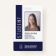 Ein modernes Schüler-ID-Abzeichen. Das Design beinhaltet das Logo, den Namen und die Markierung Ihrer Schule. Es zeigt ein großformatiges studentisches Foto. Die Informationen können personalisiert sein und beinhalten bis jetzt den Namen des Schülers, die ID-Nummer sowie das ausgestellte Datum und das Ablaufdatum. Ein Bar auf der rechten Seite zeigt die Benennung des Schülers. Würde auch für Lehrer arbeiten.