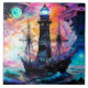 Segelschiff Leuchtturm in stürmischen Meeren unter einem Vollmond und einem bunten abstrakten Himmel KUNST KREIERT VON MINX267