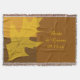 Personalisieren Sie den saisonalen Fall Leaf Color Block Wedding Throw mit den Namen der Braut und Bräutigam und das Datum der Heirat im September, Oktober oder November, um ein persönliches Sake Geschenk für eine Verlobungsfeier, Brautparty oder Nuptials zu schaffen. Diese natürliche, individuelle Hochzeitsdecke im Herbst zeichnet sich durch ein gelbes Eichenblatt-Design mit braunem Farbblockhintergrund aus.