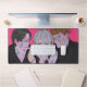 Illustration dynamique de style anime de trois jeunes hommes en sweat - shirt à capuche noir contre un arrière - plan rose solide. Leurs visages et leurs bras sont joliment ornés de tandem colorés et d'autocollants souriants, dégageant une camaraderie jeune et pointue.