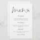 Taille 5,5 po x 8,5 po à un prix abordable. Cette conception moderne a Menu dans un élégant script défini en haut et le reste du texte centré en dessous, où vous pouvez facilement personnaliser ainsi que vos noms et date mariage au dos. Les couleurs texte et arrière - plan de chaque côté peuvent être changées à n'importe quel de votre choix via l'option customiser plus loin.