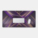 Tapis de bureau grand ordinateur ou ordinateur portable ou mousepad étendu avec des lignes lumineuses de style néon noir, or et violet de forme géométrique ressemblant à un kaléidoscope. Laissez l'illustration uniquement ou personnalisez-la avec un nom d'utilisateur, un monogramme ou votre propre texte personnalisé dans le coin inférieur gauche. Modifiez la couleur, la police ou le placement du texte en cliquant sur le bouton pour modifier la conception.