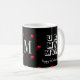 Stylish Custom Valentine's Day U MY MVP Monogram Coffee Tasse , mit fett formatierter Typografie vor einem BLACK Hintergrund mit roten Herzen. Darunter befindet sich ein Platzhalter-Gruß, den Sie personalisieren können, indem Sie den Gruß ändern oder Ihren Namen hinzufügen. Die Tasse von MVP Valentine ist eine großartige Möglichkeit, Ihre Liebsten als Ihre wertvollste Person/Person am Valentinstag zu schätzen. Das Design wird auf der Rückseite wiederholt und in der Mitte befindet sich ein CUSTOMIZABLE MONOGRAM, wo Sie Ihren ersten Platz hinzufügen können. Wählen Sie aus einer großen Auswahl an Valentinstag-Designs für Karten, Einladungen, Wohngestaltung, Kleidung und Geschenke, die von Berean Designs entworfen wurden.