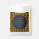 Diese personalisierten Verlobungstaschen sind ein charmanter Weg, um den Gästen für die Feier eines solchen besonderen Anlasses zu danken. Das Design zeichnet sich durch eine auffallende dunkle Kulisse aus, die durch eine gewagte, geometrische Blumenstruktur in warmen Gold-, Rot- und Erdtönen ergänzt wird. Diese mit Namen und Datum individuell gestalteten Gefälligkeitssäcke eignen sich hervorragend zum Halten von süßen Leckereien, kleinen Pfannkuchen oder Wertschätzungen für Ihre Lieben. Sie sind die perfekte Touch für eine gemütliche Verlobungsfeier, die den Gästen eine herzliche Erinnerung an den Tag verlasst.