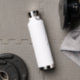 Custom Script Monogram Name Elegant Chic Water Flasche. Ein einfaches und modernes Design in Schwarz-Weiß-Farbe mit handgeschriebener Kalligraphie für ein berufliches und cooles Aussehen. Erstellen Sie Ihre eigenen personalisierten, umweltfreundlichen Geschenke. Jeder Schriftart, jede Farbe, kein Minimum.