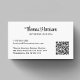 Berufliche Visitenkarte mit Ihrem Namen in einer fett formatierten Schrift und Ihren Titel und Ihre Kontaktinformationen (z.B. E-Mail, Telefonnummern, Firmenname und Postanschrift) in sauberer, einfacher und moderner Schrift. Geben Sie eine URL-Adresse ein, um einen skalierbaren QR-Code zu erstellen, der mit Ihrer Website, sozialen Medienprofilen oder einer anderen Plattform verknüpft ist, die Ihre Arbeit präsentiert. Dies macht es anderen leicht, Ihre Erfahrung zu erforschen. Anpassen Sie auf der Rückseite zusätzliche Textdateien oder erstellen Sie einen leeren verlass.