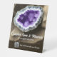 Stilvolle Schilder eignen sich ideal für alle, die in der Edelstein- und Lapidarkunst-Industrie, Veranstaltungen wie z.B. eine Edelstein- & Mineralshow, oder für diejenigen, die heilende Kristalle und dergleichen verkaufen. Design bietet einen lila Amethystgeode ( Design erstellt mit AI Rendering Software) mit Raum, um Ihren individuellen Firmennamen, Website und Social Media QR Code hinzuzufügen. Ideal für Shoptheken oder Messetische!
