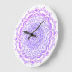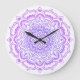 Beautiful clock with an original Bohemian Boho Mandala design, purple on white background.