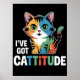 Diese beeindruckende Grafik zeigt eine charmante Cartoon-Katze mit fett geschnittenem, orangefarbenem, blauem und grünem Fell und fesselnden grünen Augen. Die Katze ist aufrecht sitzend dargestellt, trägt einen würdigen Oberhut und eine smarte rote Bogen-Krawatte und strahlt eine Atmosphäre der Selbstsicherheit aus. Der prominente weiße Text sagt mutig: "Ich habe KATTITUDE GOT", wobei das Wort "KATTITUDE" farblich hervorgehoben wird. Dieses Design zeichnet sich durch die gleichmäßige und unabhängige Einstellung der Katzen aus, das Set vor einem soliden schwarzen Hintergrund. Digitaler Download nur für den persönlichen Gebrauch.