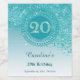Stylish Falling Teal Blue Glitter 20th Birthday Weinetikett