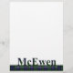 Schöne Schreibwaren mit weißem Letterhead, mit einer Grafik des karierten blauen, grünen, schwarzen, gelben und roten MacEwen-Tartan-Musters, ganz unten. Karierter grafischer Text, der McEwen liest, läuft an der Spitze der karierten Band. Personalisieren Sie den weißen Text mit Ihren Informationen. Matching Produkte sind erhältlich.