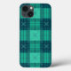 Timeless and Stylish Tartan Plaid Green iPhone 13 case.