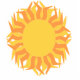 Eine gelbe und orangefarbene Sonnenfotoskulptur, die als Ornament oder Fensterheber verwendet werden kann.