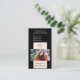 Mit dieser schicken und modernen Visitenkarte machen Sie einen bleibenden Eindruck, perfekt für Friseure, Make-up Künstler und Beauty-Profis. Mit einem stilvollen Schwarz-Schwarz-Design, Platz für Ihr Foto, Logo und einem scannbaren QR-Code für unkomplizierte Kontaktaufnahme oder Buchung. Eine elegante und trendige Art Ihre Marke zu präsentieren! Personalisieren Sie Ihre Details und heben Sie sich in der Schönheitsindustrie hervor.